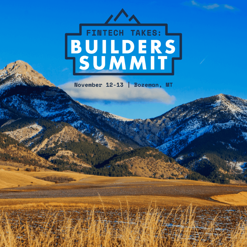 The Fintech Takes: Builders Summit is an invite-only, 2-day event for 50 of the best builders in fintech. The event will be held under the Chatham House Rule in the mountains outside of Bozeman, MT.